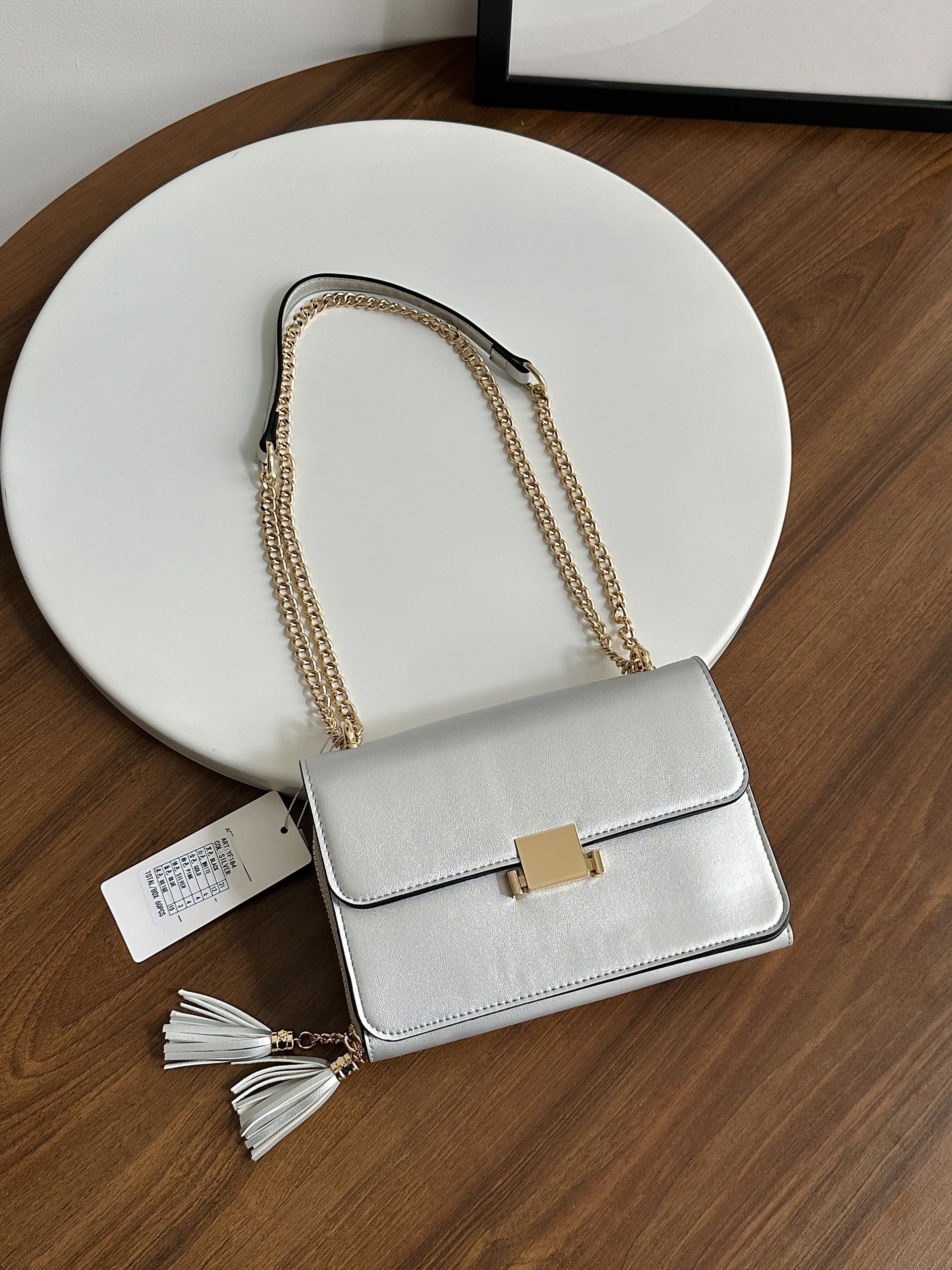 Ce sac à bandoulière compact et élégant, avec sa chaîne pratique, est parfait pour vos sorties quotidiennes. Il garde vos essentiels à portée de main, alliant style et praticité
