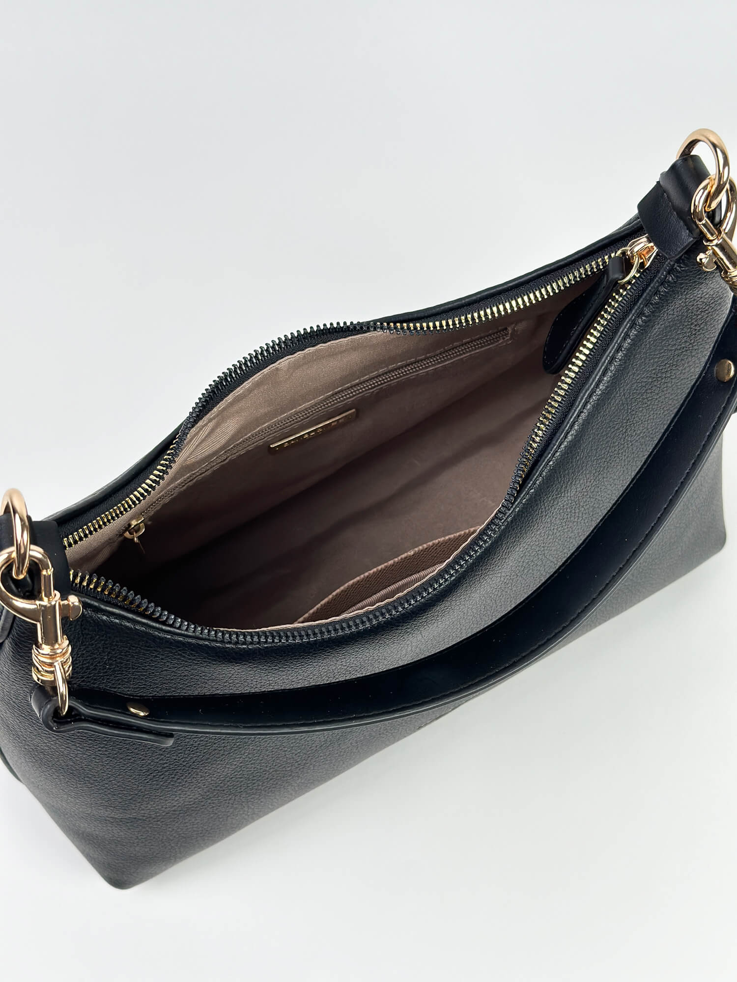 Ce sac Hobo trés Stylé en cuir lisse, porté épaule convertible en sac porté travers, avec fermeture zippée, doublure intérieure en textile avec 1 poche zippée + 1 poche plaquée, bandoulière amovible.