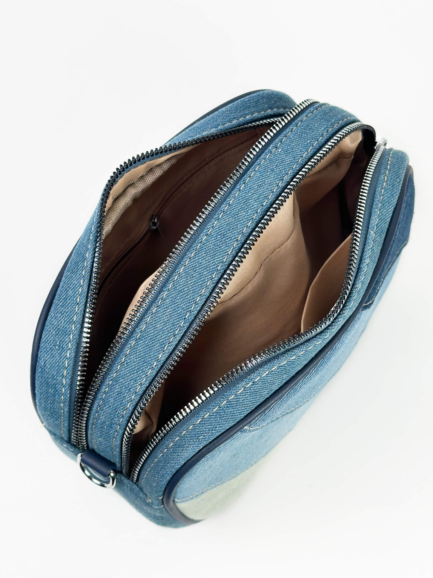 Compact et stylé, le sac Tokyo de ELISA est fabriqué en denim multiteintes, avec une large bandoulière réglable pour un confort optimal. Son intérieur zippé est parfait pour garder vos essentiels en sécurité, tout en apportant une touche moderne à vos tenues.